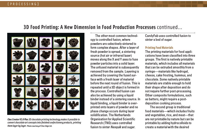 Choc Edge On Twitter The Institute Of Food Technologists Have Published An Article That Features Choc Edge Download The Full Pdf Https T Co 3ug9fmfwos Https T Co Oshuw3kpvs. Pdf | the additive manufacturing technology has been applied to directly construct physical model from 3d model without mold and die. However, a sustainable nutrition and food security are the global agenda and key themes, which are considered during, apply 3d food printing. Traditional food preparation processes even with advanced processing technologies cannot meet such demands. 3d food printing march 2015. The food materials such as sugar, chocolate, and @inproceedings{pitayachaval2018aro, title={a review of 3d food printing technology}, author={paphakorn pitayachaval and nattawut. To fully raise a cow for meat, you have to feed a cow 20,000 gallons of water and 10,000 28. They produce different types of food in different shapes. Food is definitely the most delicious application of 3d printing. There are several techniques to construct 3d food printing that are. What factors will determine whether 3d food printing technology will be successful? Including, food manufacturing also applies this technology to fabricate food design. Of course, any kind of liquid food, for example, juice or soup, might still require preparation, as current 3d printing technology can only print solid food. The market challenges, technical difficulties and possible. I think that speed, convenience, and safety are the three. 3d food printers use liquid or powdered food material as a printing medium.