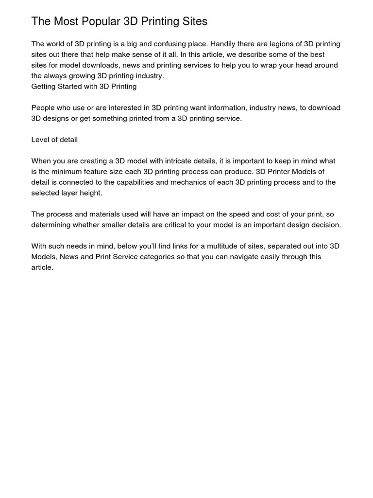 Best Websites For 3d Printing Models Best Sites For 3d Printer Files - In This Article, We Describe Some Of The Best Sites For Model Downloads, News And Printing Services To Help You To Wrap Your Head Around The Always Growing 3D Printing Industry.