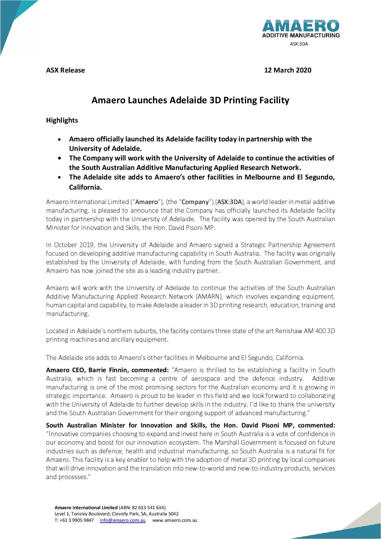 Global 3d Printing 3d Printing Adelaide On Demand 3d Printing , Amaero Has Strategic Collaborative Partnerships With Both Mcam At Monash University, Melbourne And With The University Of Adelaide To Develop Additive Manufacturing Technology.